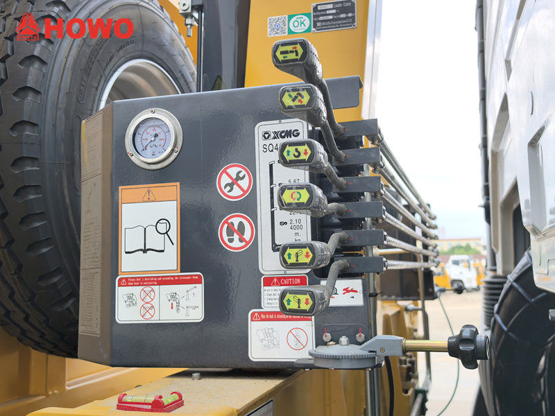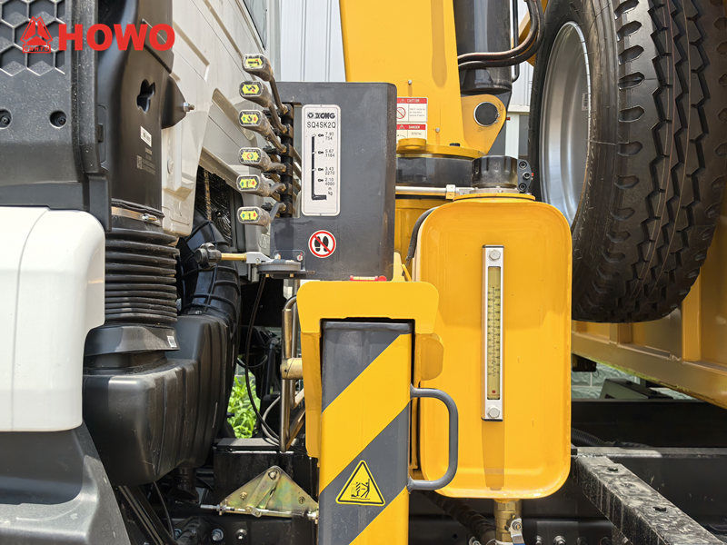 De Howo-truck met een 4-tons kraanlift heeft een uitzonderlijk laadvermogen en een robuuste constructie, met een maximaal hefvermogen van 4 ton en een hefkoppel van 10 ton. Het hydraulische systeem heeft een debiet van 25 l/min, een eigen gewicht van 1.271 kg en een rotatiebereik van 360°, waardoor flexibele inzet in diverse omgevingen mogelijk is, zoals bouwplaatsen en havens.