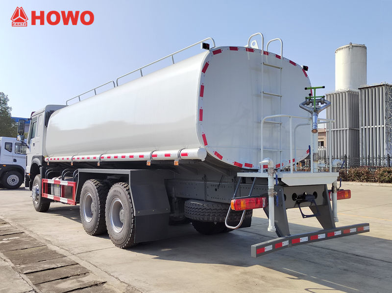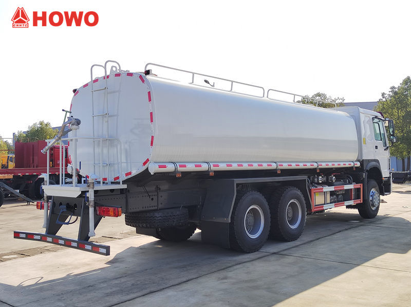 De HOWO watertankwagen met een inhoud van 15 m³ spoelt niet alleen krachtig stof en zand van de weg met zijn spoelmechanisme aan de voorzijde, maar verdeelt ook een gelijkmatige waternevel met zijn sproeimechanisme aan de achterzijde, waardoor stof wordt verminderd en de wegen vochtig worden gehouden.