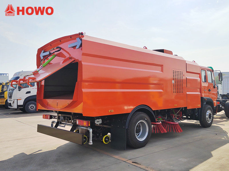De Sinotruk Vacuum Road Sweeper is een gespecialiseerd reinigingsvoertuig dat wegvegen, afvalinzameling en transport combineert. Het wordt veel gebruikt op stedelijke wegen, pleinen, luchthavens, havens en industrieterreinen. Uitgerust met een gecombineerd mechanisch veeg- en zuigsysteem, Sinotruk vacuüm straatveegmachine Het apparaat verwijdert efficiënt vuil zoals stof, gevallen bladeren en grind. De stofbestrijdingsfunctie met waterbesproeiing vermindert de vorming van nieuw stof. De eenvoudige bediening, hoge efficiëntie en effectieve reinigingsprestaties verbeteren de milieukwaliteit op de weg aanzienlijk, waardoor het een essentieel onderdeel is van stedelijke sanitaire voorzieningen en milieubescherming.