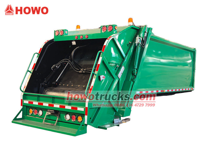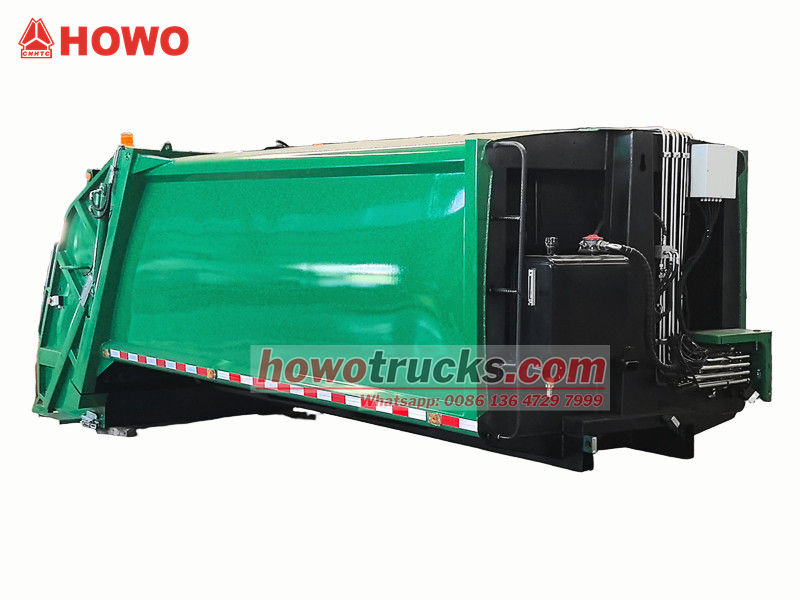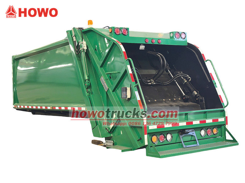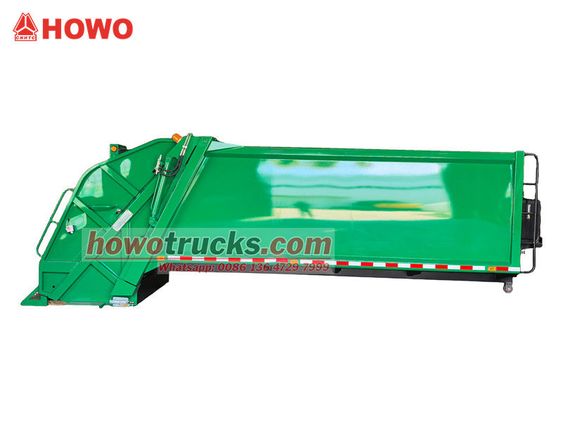 De 10 m³ grote achterlader met verdichtingsbak is het kernsysteem van het voertuig en bestaat hoofdzakelijk uit een afgesloten afvalcompartiment, een persinrichting en een laadmechanisme. De robuuste en duurzame constructie en uitstekende afdichting voorkomen lekkage van afvalwater en geuren. Tijdens het gebruik wordt het afval, nadat de laadtrechter het heeft ontvangen, door een hydraulisch aangedreven schraper in het compartiment geschraapt. De persinrichting oefent vervolgens druk uit om het afval te verdichten, het volume te verminderen en de laadcapaciteit te vergroten. De maximale laadcapaciteit bedraagt 12 kubieke meter en ondersteunt diverse laad- en losmethoden om aan uiteenlopende operationele behoeften te voldoen.