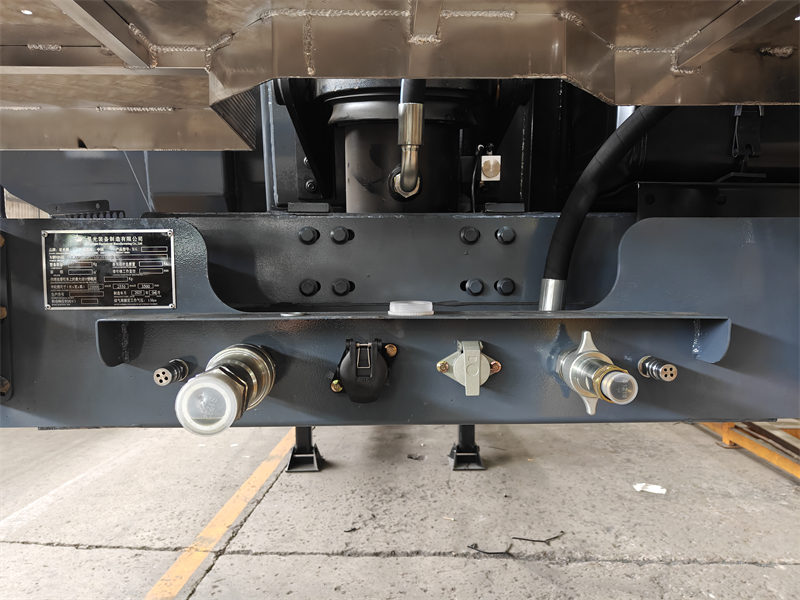 Thenieuw 3 as 40 tonkiepwagen De opbouw van de trailer is gemaakt van Q370R-materiaal, met een ontwerpdruk van 1,61 MPa en een plaatdikte van 12-16 mm. Uitgerust met een HYVA hydraulisch systeem en een drukmeter, garandeert dit de veiligheid tijdens het gebruik. Kenmerken zoals een BPW-brug, JOST-koningspennen en JOST-steunpoten voldoen aan de transportbehoeften in diverse omgevingen en op verschillende wegdekken.