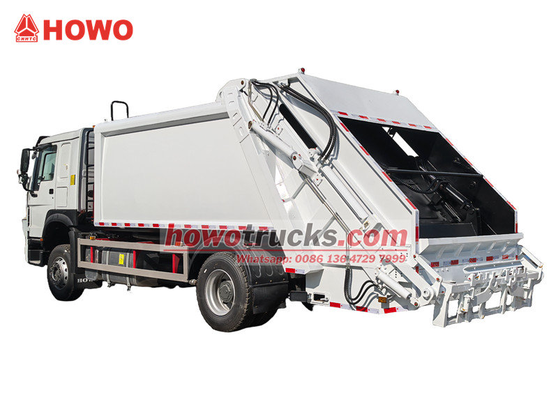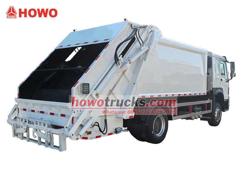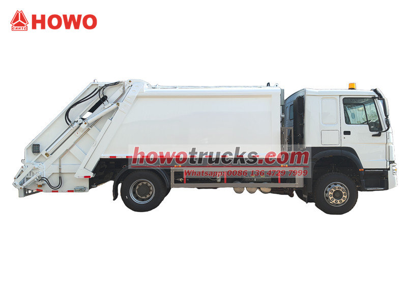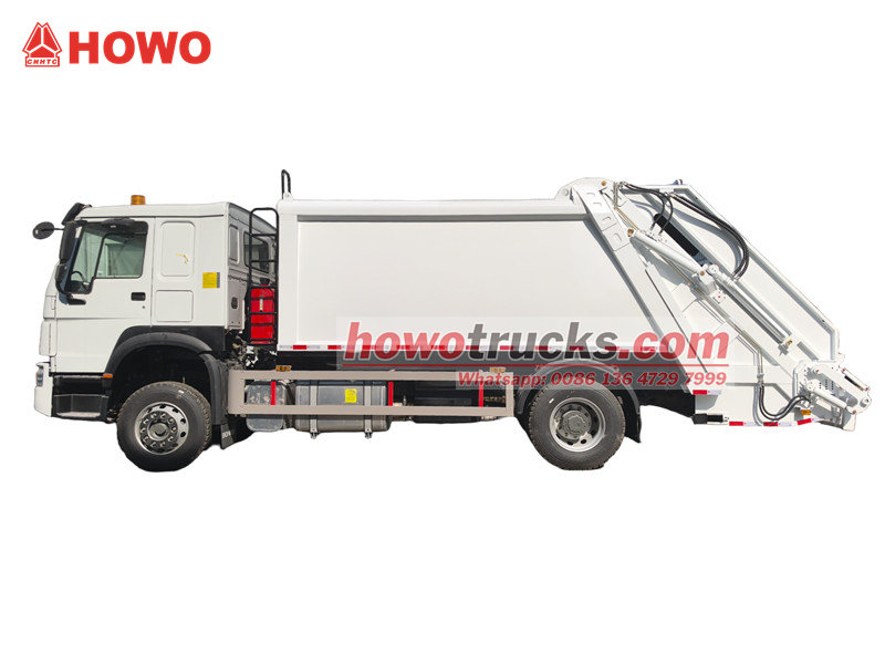 300 pk motor HOWO vuilniswagen met persinstallatie (ook wel HOWO 14 m³ vuilniswagen met achterlader, HOWO 4x2 vuilniswagen met persinstallatie, HOWO vuilniswagen met persinstallatie, HOWO 14 m³ vuilniswagen met persinstallatie, vuilniswagen met persinstallatie, HOWO vuilniswagen met persinstallatie, enz. genoemd). Het is een nieuw type afvalvoertuig dat speciaal wordt gebruikt voor het inzamelen, vervoeren en verwijderen van afval.