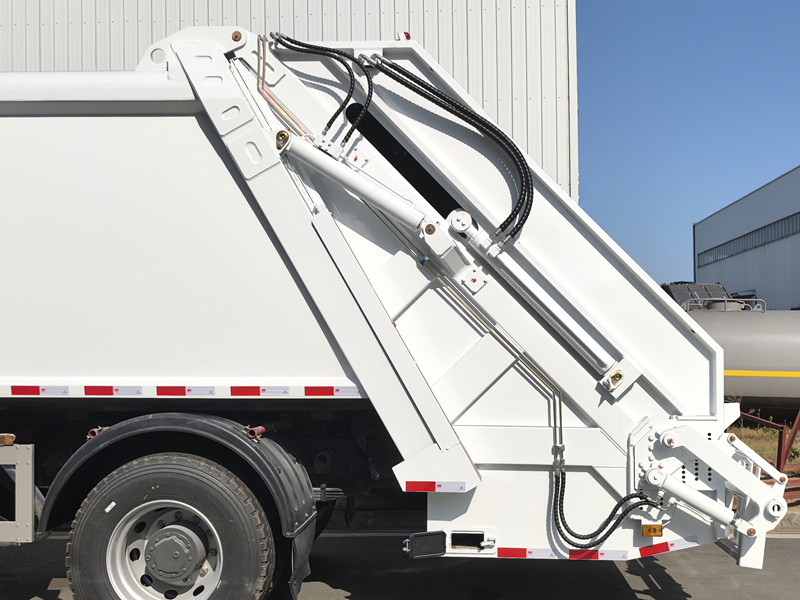 ► Verdichtingsprincipe: Om het transport van afval efficiënter te maken, gebruiken de vuilniswagens van HOWO een verdichtingsapparaat om het afval te comprimeren. Dit apparaat gebruikt een hydraulisch systeem of een ander drukmechanisme om het afval in de hoop samen te persen tot een kleiner volume, waardoor er meer afval kan worden vervoerd.