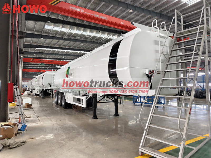 13000*3De nieuwe 3-assige 40000L De brandstoftankoplegger is gemaakt van Q370R-materiaal, heeft een ontwerpdruk van 1,61 MPa en een wand- en eindplaatdikte van 8,0 mm, en voldoet aan de nieuwste productienormen. Hij is uitgerust met diverse veiligheidskleppen, vloeistofniveaumeters, drukmeters en andere componenten om de veiligheid tijdens het transport te garanderen. Daarnaast is hij voorzien van BPW-bruggen, JOST-trekpennen, JOST-steunpoten en andere configuraties, waardoor hij geschikt is voor transport in verschillende omgevingen en op diverse wegdekken. Het is een krachtige en zeer veilige mobiele dieseltankoplegger.