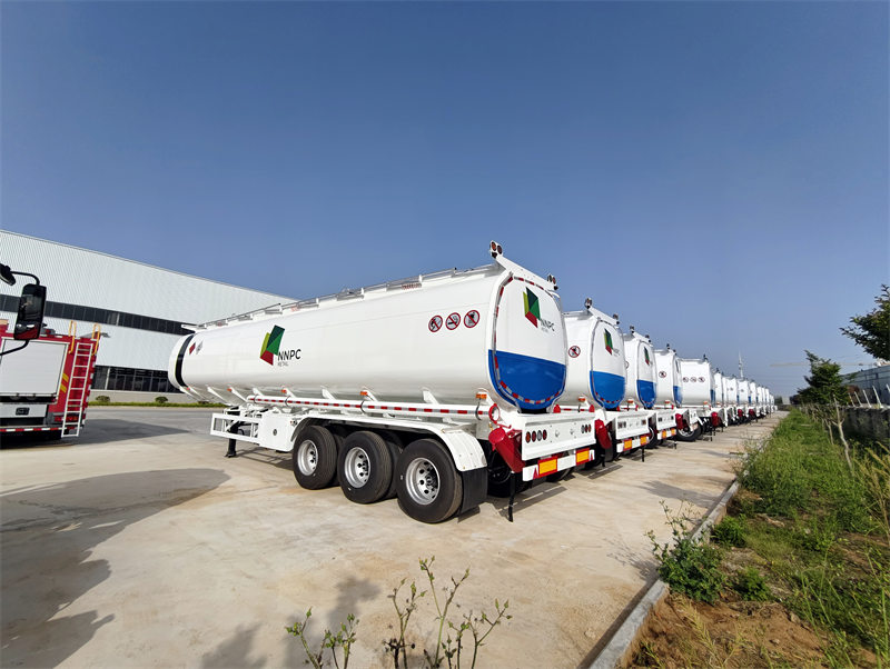 De nieuwe 3-assige 40000L De brandstoftankoplegger is gemaakt van Q370R-materiaal, heeft een ontwerpdruk van 1,61 MPa en een wand- en eindplaatdikte van 8,0 mm, en voldoet aan de nieuwste productienormen. Hij is uitgerust met diverse veiligheidskleppen, vloeistofniveaumeters, drukmeters en andere componenten om de veiligheid tijdens het transport te garanderen. Daarnaast is hij voorzien van BPW-bruggen, JOST-trekpennen, JOST-steunpoten en andere configuraties, waardoor hij geschikt is voor transport in verschillende omgevingen en op diverse wegdekken. Het is een krachtige en zeer veilige mobiele dieseltankoplegger.