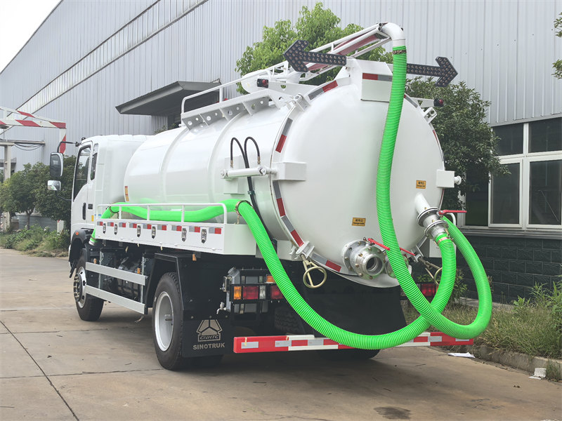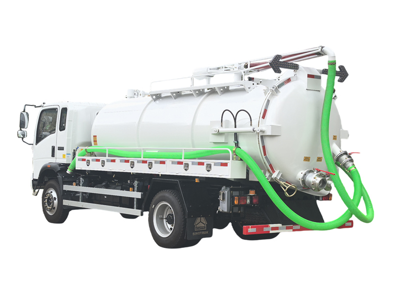 De HOWO 10000L vacuümtankwagen is een krachtig voertuig voor afvalwaterzuivering, gebouwd op een HOWO 4×2 chassis en uitgerust met een 160 pk motor. Hij zuigt en loost efficiënt afvalwater en slib met behulp van de onderdruk die wordt gegenereerd door een vacuümpomp. Met een extra fecaliënzuigstang kan hij ook septische tanks reinigen en verstoppingen in rioolbuizen verhelpen, waardoor het een veelzijdig multifunctioneel voertuig is. Deze HOWO afvalwatertankwagen werkt zeer efficiënt en heeft een grote capaciteit, waardoor hij een ideale keuze is voor gemeentelijke afvalwaterzuivering, veehouderijen en andere soortgelijke toepassingen.