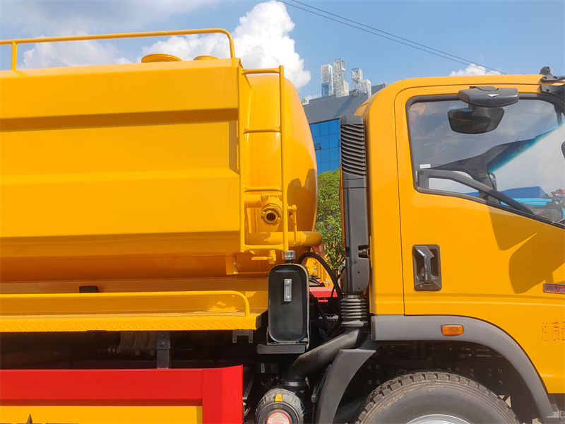 De HOWO 10000L vacuüm rioolreinigingswagen is een zeer efficiënt voertuig voor de sanitaire sector, dat hogedrukreiniging en vacuüm rioolzuiging combineert. Gebouwd op een robuust HOWO 4×2 chassis, maakt het gebruik van de krachtige prestaties van de Duitse PINFL hogedrukwaterpomp en de SK-12 watercirculatievacuümpomp, in combinatie met een dubbele tank van 7000L + 3000L, om taken zoals het baggeren van leidingen en het opzuigen van slib efficiënt uit te voeren. Het is een compleet en veelzijdig stuk sanitaire apparatuur.