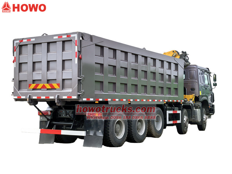 13000*3The Howo mijnbouwdumper met kraanis gebouwd op de Howo zware 10x4 aandrijvingchassis, uitgerust met WP12S400E201dieselmotor en een HW19710 10-versnellingsbak. Deze heeft een krachtig vermogen en kan zich aanpassen aan complexe werkomstandigheden. Hij is uitgerust met de CS knikkraan met een maximaal hefvermogen van 8tonnen.