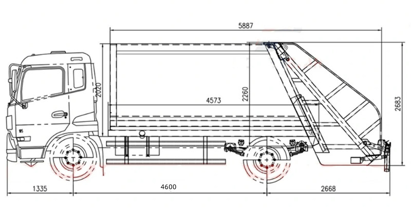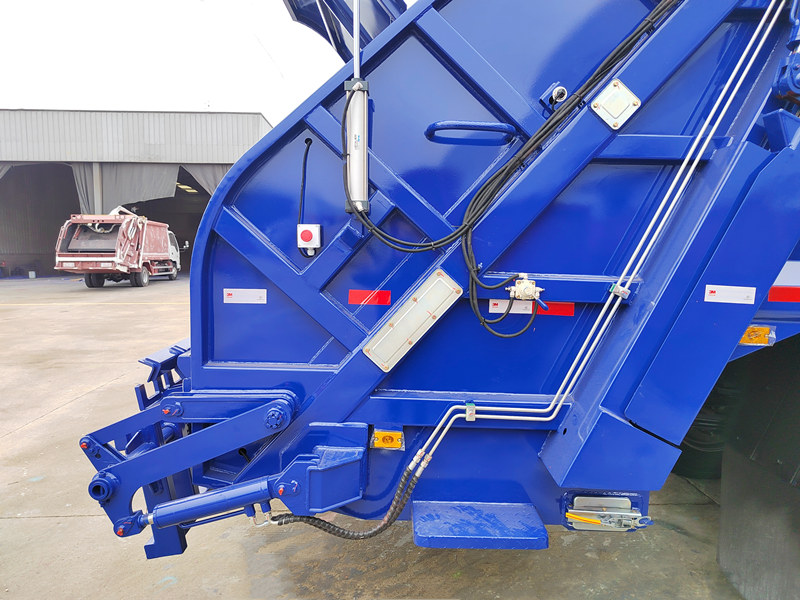 ♦Wanneer het voertuig bij de afvalverwerkingsinstallatie aankomt, keert het hydraulische systeem de werking om, waardoor de duwer wordt geduwd om het samengeperste afval uit de laadbak van de vrachtwagen te werpen.