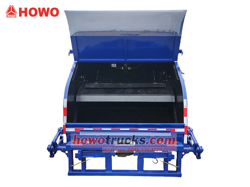 De afvalbak is gemaakt van zeer sterk, weerbestendig staalplaat, met zijpanelen die door middel van een eendelig spuitgietproces zijn vervaardigd. Het compartiment sluit uitstekend af, waardoor lekkage van afvalwater en verspreiding van geuren wordt voorkomen. Dit maakt de afvalbak milieuvriendelijk en efficiënt. Howo vuilniswagen met achterverdichting Het is geschikt voor de centrale inzameling en het transport van huishoudelijk afval in steden, woonwijken, fabrieken en andere locaties. Het is eenvoudig te bedienen, veilig en betrouwbaar.