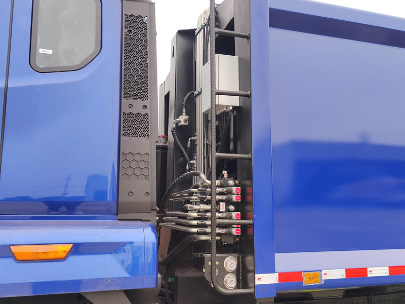 ●Het systeem zorgt voor automatische afvalcompressie en -lossing door middel van hydraulische aandrijving, waardoor de efficiëntie van afvalinzameling en -transport aanzienlijk wordt verbeterd.