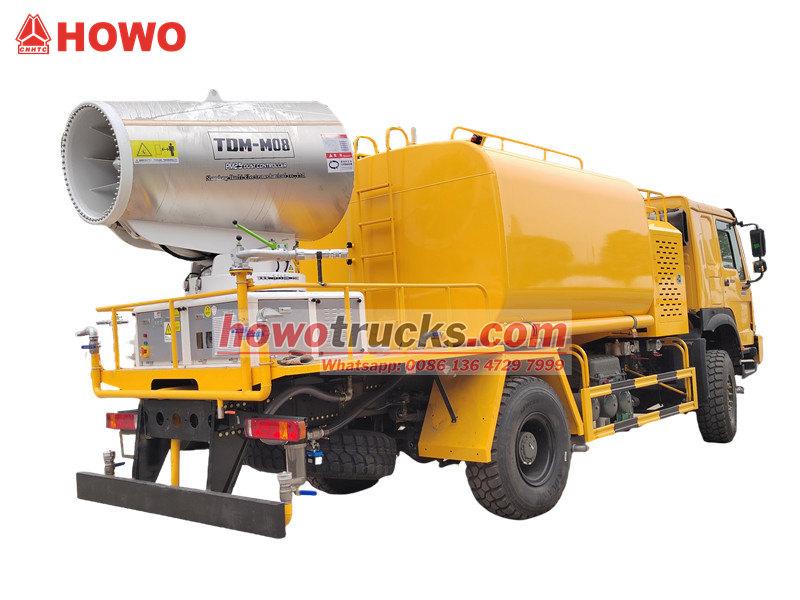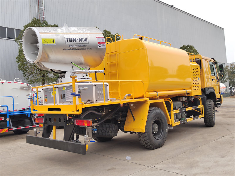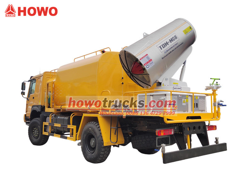 De HOWO 4×4 waterkanonwagen is gebouwd op het HOWO vierwielaangedreven chassis en uitgerust met een 300 pk motor en een 4x4-aandrijving, wat zorgt voor uitstekende prestaties op complex terrein. Met een ultragroot bereik van 80 meter en 90 sproeiers kan de wagen een fijne waternevel (20-200 μm) spuiten met een maximaal bereik van 20.000 m². In combinatie met een watertank van 10.000 liter en een hogedrukspuitsysteem voert de wagen efficiënt taken uit zoals het verminderen van stof op wegen, het bestrijden van stof op bouwplaatsen en het besproeien van landbouwgrond. De wagen is bijzonder geschikt voor stofbestrijding in mijnbouwgebieden, havens, stedelijke milieubescherming en andere toepassingsgebieden.