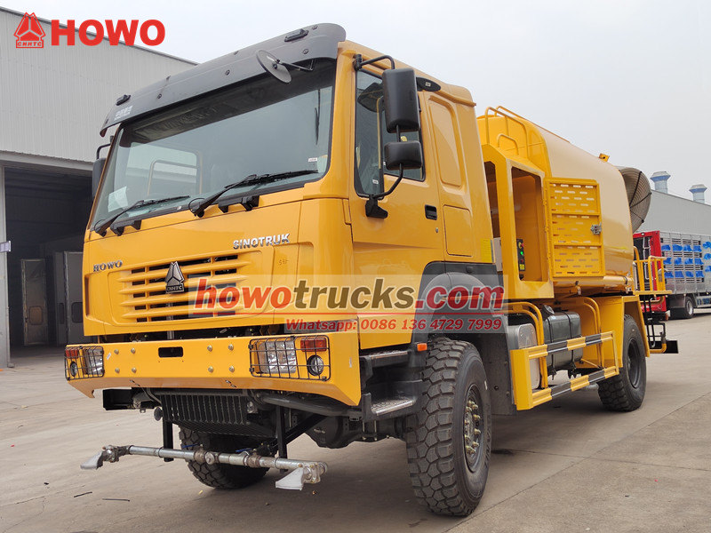 De HOWO 4x4 waterkanontruck Het systeem integreert een waterkanon met een ultragroot bereik van 80 meter en een hogedruksproeisysteem. Het kanon is uitgerust met 90 sproeiers, waarmee een fijne waternevel (20-200 μm) kan worden gespoten over een oppervlakte tot 20.000 m², waardoor stof effectief wordt bestreden. De grote watertank van koolstofstaal met een inhoud van 10.000 liter, in combinatie met een pomp met een debiet van 60 m³/u, ondersteunt diverse toepassingen zoals straatreiniging, stofbestrijding op wegen en landbouwbespuiting. Dankzij de draadloze afstandsbediening en het touchscreen-bedieningspaneel biedt het systeem flexibele bediening, waardoor het een complete oplossing is voor mijnbouwgebieden, havens, stedelijke noodsituaties en andere toepassingsgebieden.