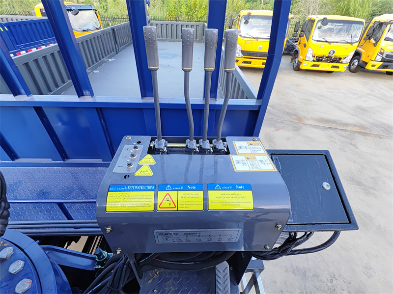 2. Bedieningspaneel voor hoogwerkers: Het bedieningspaneel aan de linkerkant met zitplaats is voorzien van een set geïntegreerde handmatige hydraulische joysticks, die een goed zicht op de werkhoogte en nauwkeurige controle over de hijsbewegingen bieden.