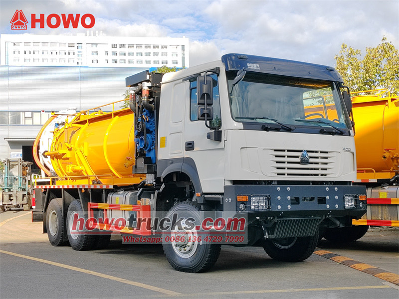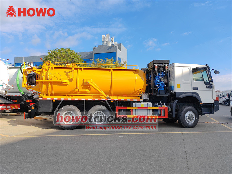 Het HOWO 6X6 12mbm gecombineerde baggervoertuig is een aangepaste versie van het Sinotruk HOWO 6x6 vierwielaangedreven chassis. Het beschikt over een halfcabine, een wielbasis van 4300 mm + 1400 mm en is uitgerust met een Weichai WP10H400E62 Euro 6 400 pk motor en een HW19710 10-versnellingsbak. Het voertuig is voorzien van een afvalwatertank van 10 kubieke meter en een reinigingswatertank van 2 kubieke meter, elk met aparte compartimenten.