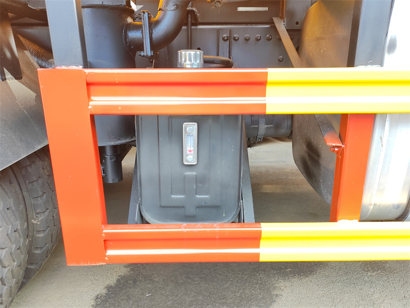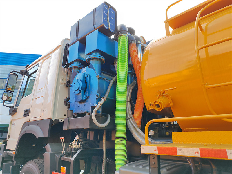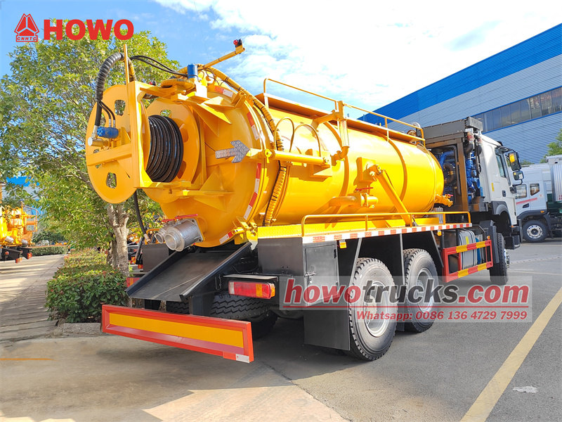 Het Howo rioolzuigvoertuig is uitgerust met een hydraulische olietank, een afvoerklep, een SK-15 watercirculatievacuümpomp, een rioolzuig- en -afvoerleiding, een hogedrukreinigingspomp, een hogedrukreinigingshaspel, een waterdampafscheider, een olie-gasafscheider, een kijkvenster voor het vloeistofniveau en een ladder.