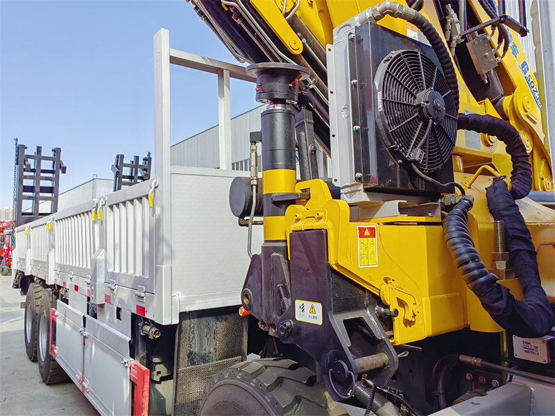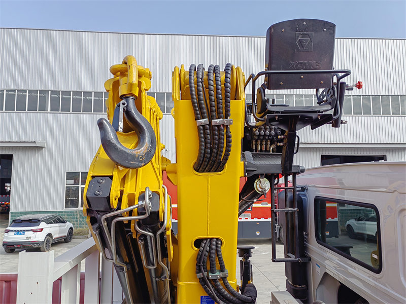 De bovenste lichaamvan de Hoe lading vrachtwagen is uitgerust met een vouwen giekkraan met een maximaal hefvermogen van 16 tonen een volledige 520° rotatie. Het gewicht van de kraan is 4200kg en de installatieruimte is 1350 mm. Het bedieningspaneel kan in het Engels of andere talen worden gekozen om gebruikers met verschillende behoeften tegemoet te komen.