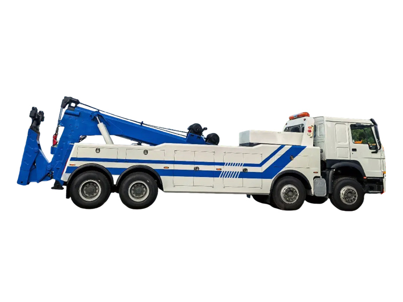 De HOWO 8×4 zware sleepwagen is een professioneel reddingsvoertuig met geïntegreerde sleep- en hefmogelijkheden. Gebouwd op het robuuste HOWO 8×4 chassis en aangedreven door een Weichai-motor van 400 pk, beschikt hij over een hefvermogen van 16.000 kg en twee lieren van 80 kN. Dit maakt gelijktijdig heffen, ondersteunen en slepen mogelijk, waardoor hij zeer effectief is bij het snel verwijderen van zware voertuigen na een ongeval op snelwegen en in stedelijke gebieden.