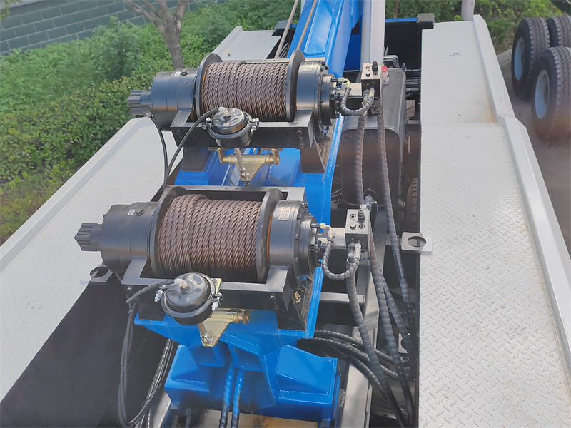 3. Lierfunctie: Zware sleepwagens zijn uitgerust met twee lieren. Deze werken samen met de hoofdarm en ter plaatse verankerde punten (vaste katrollen) om diverse werkzaamheden uit te voeren, zoals het rechtop zetten van omgekantelde voertuigen en het takelen van voertuigen die in diepe greppels zijn gerold.