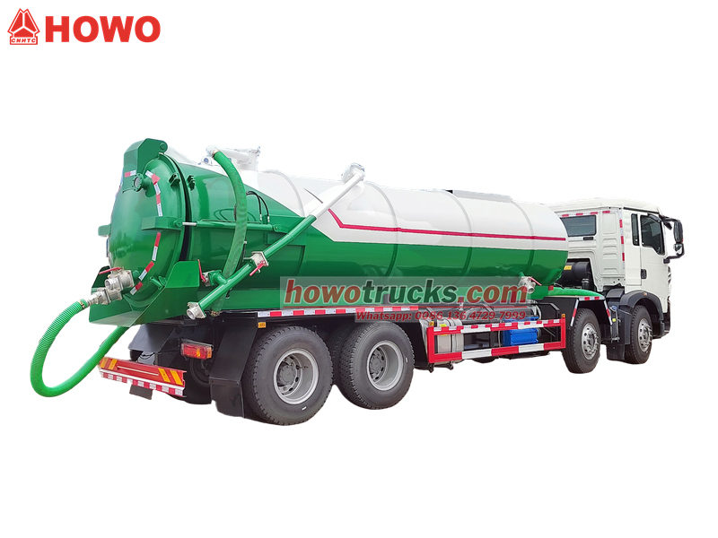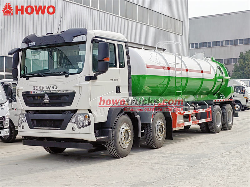 Jurop pump, 6×6, 8×8, RHD drive is optionalDe Howo Heavy 8x4 vacuüm rioolwagen is een krachtig, multifunctioneel voertuig dat speciaal is ontworpen voor zware toepassingen. Gebouwd op het beproefde HOWO-platform van Sinotruk voor zware vrachtwagens, combineert het vermogen, duurzaamheid en operationele efficiëntie, met een focus op grootschalige installaties voor de behandeling van vloeibaar afval voor gemeentelijke, sanitaire en industriële sectoren. De Howo Heavy 30000L vacuümtankwagen is uitgerust met een MC07H.35-60 motor van 350 pk met een cilinderinhoud van 7360 ml en een vermogen van 257 kW.