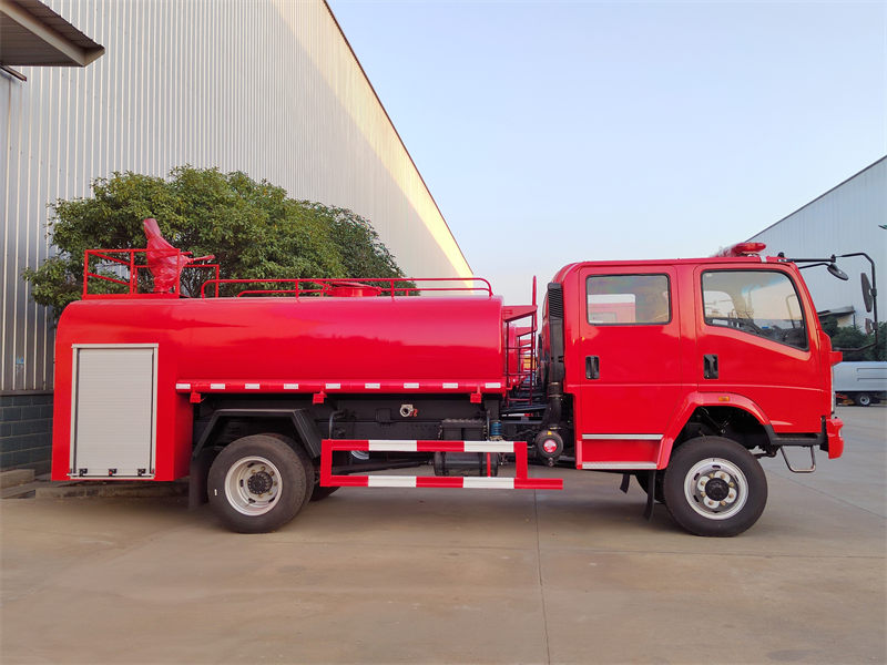 De HOWO 4X4 Rescue Fire watertankwagen is een professioneel brandweervoertuig, ontworpen voor noodsituaties bij branden. Hij is uitgerust met een HOWO 4X4 chassis en biedt plaats aan 3+3 passagiers. De ISF3.8S3154-motor levert een vermogen van 154 pk, waarmee de HOWO 4X4 Rescue Fire brandweerwagen voldoende kracht levert. De Howo brandweerwagen voldoet aan de EURO Level 6 emissienormen, wat betekent dat de uitstoot schoon en milieuvriendelijk is. De 8.25R16-banden zorgen voor stabiel rijden in noodsituaties. Qua brandbestrijdingsprestaties heeft de Howo offroad brandweerwagen een watertank met een capaciteit van 6000 liter. Hij is uitgerust met een CB10/40 XZ brandweerpomp en een PS40 brandweerkanon, waarmee een debiet van 36 l/s bij 1,0 MPa en een bereik van meer dan 45 meter mogelijk is. Dit garandeert effectieve brandbestrijdingsoperaties.