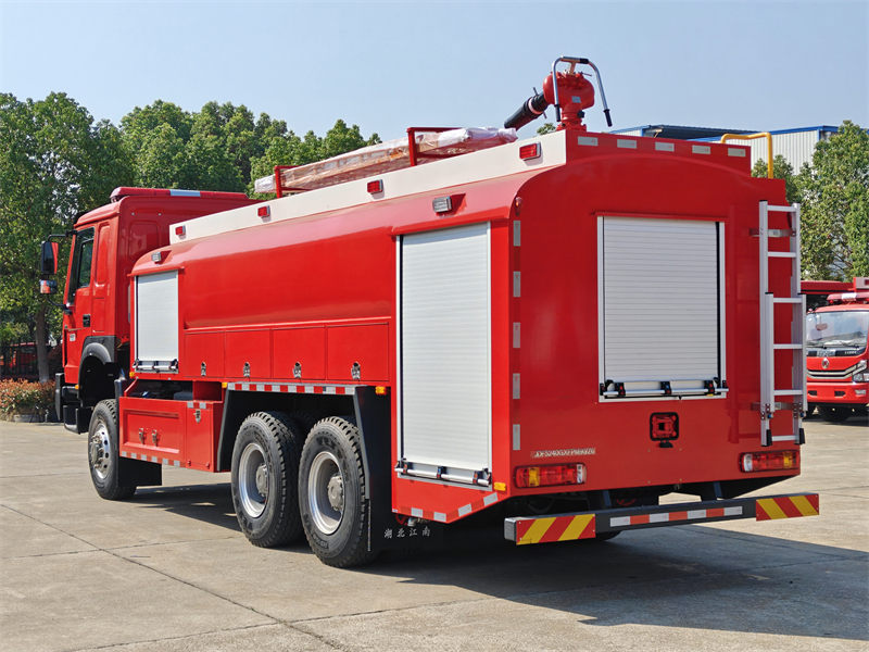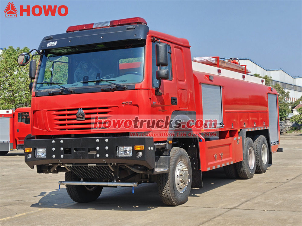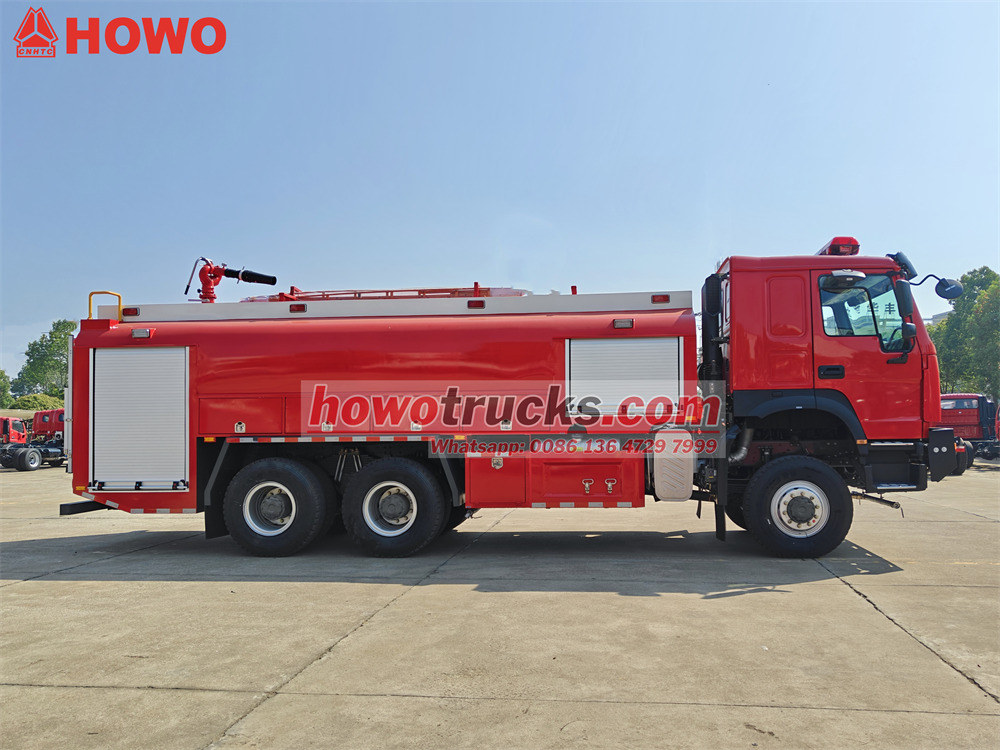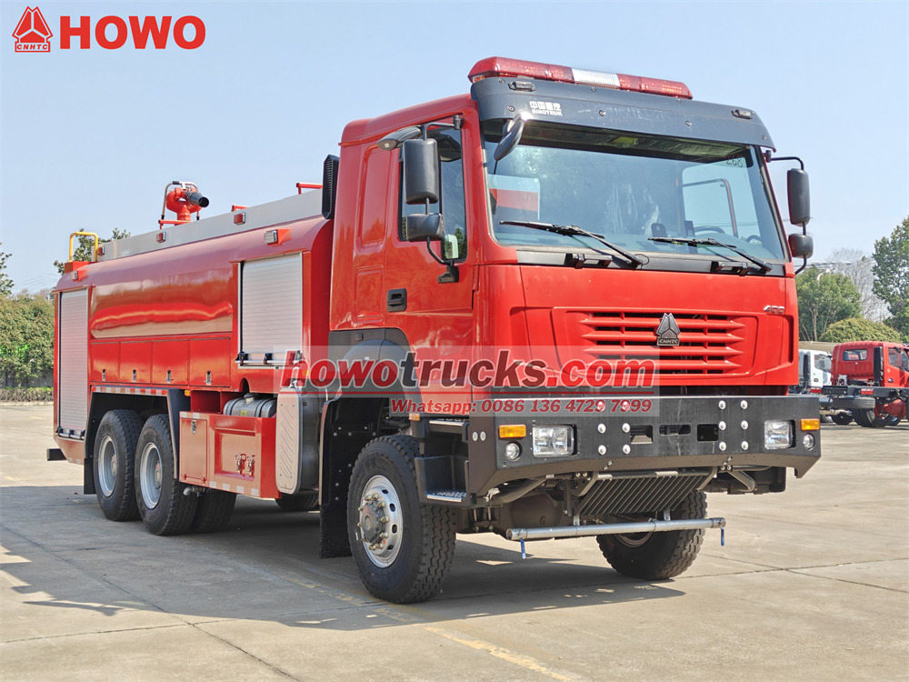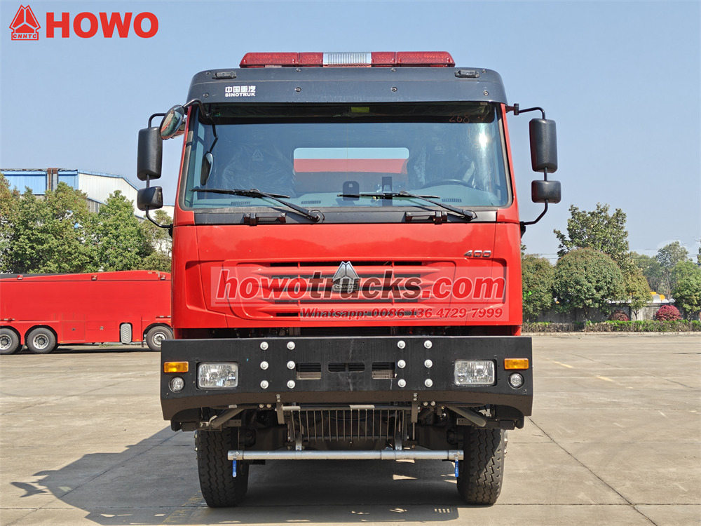 The De Howo terreinwagen met watertank maakt gebruik van een zwaar Sinotruk chassis met een 6x6 aandrijving. Hij is uitgerust met eenWP12S400 E201 De Howo 6x6 brandweertankwagen heeft een motor met een nominaal vermogen van 400 pk en een handgeschakelde versnellingsbak met 12 versnellingen vooruit en 2 achteruit. De tank heeft een inhoud van 8000 liter water en 1500 liter schuim en is gemaakt van PP-composietmateriaal met corrosiebestendige eigenschappen. Op het dak is een brandmonitor gemonteerd met een debiet van 45 liter per seconde en een bereik van meer dan 55 meter.