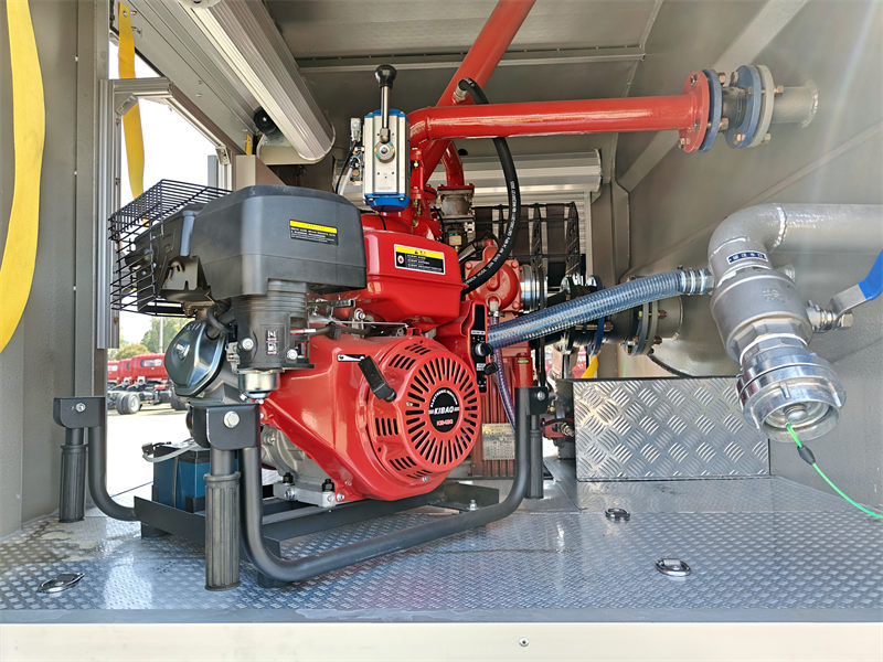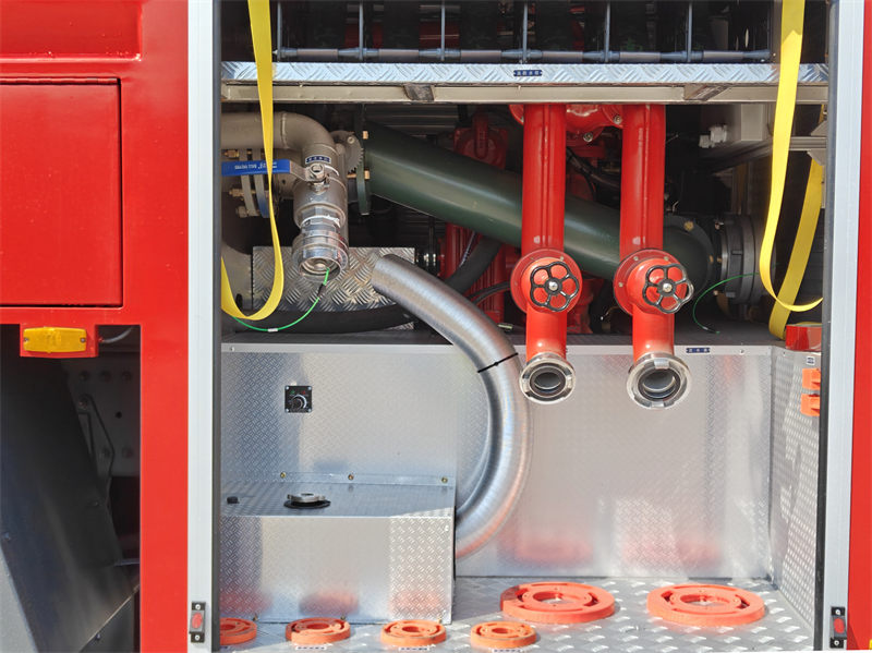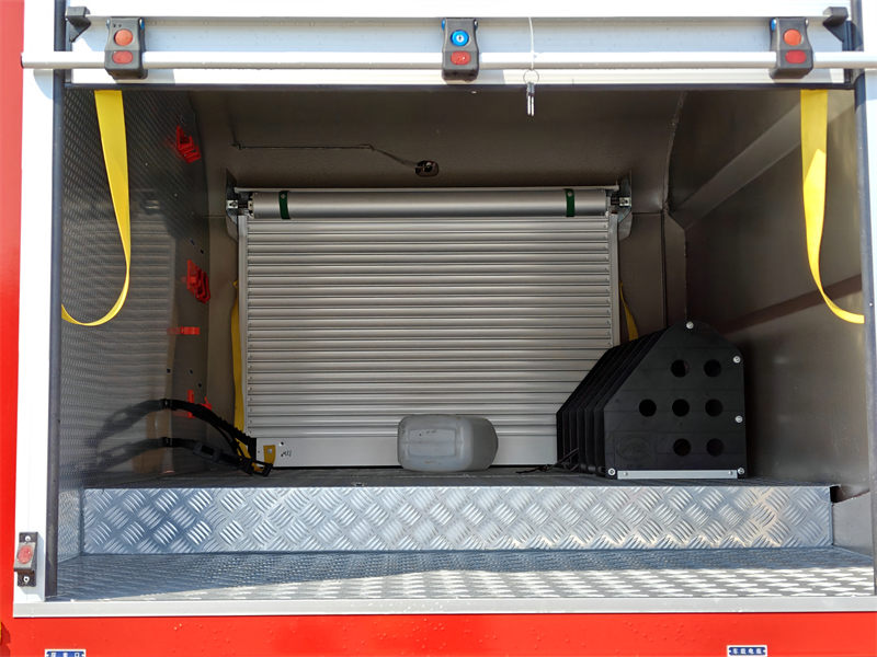 Het apparatuurcompartiment van aluminiumlegering is niet alleen licht van gewicht, maar roest ook nooit, waardoor de levensduur aanzienlijk wordt verlengd. De vloeistoftank van PP-composietmateriaal is zowel licht als duurzaam. Elk detail getuigt van vakmanschap, van de roldeur met regengoot tot het pedaal met antislipontwerp, die allemaal de zorgvuldige aandacht voor de veiligheid en het comfort van de brandweerlieden weerspiegelen.