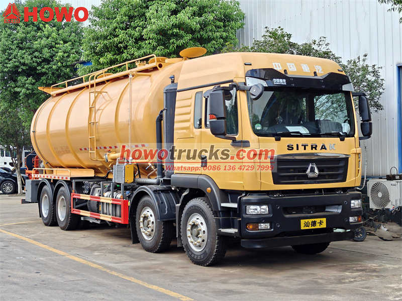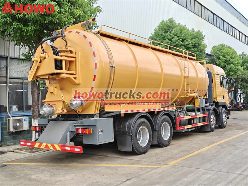 18000KG*2Op het gebied van gemeentelijke sanitaire voorzieningen, Howo 8x4 zware reinigingsstofzuiger riooltankwagen Deze machine is dankzij zijn uitstekende prestaties en multifunctionele ontwerp een industriestandaard geworden. Uitgerust met een krachtige Weichai-motor met een maximaal vermogen van 350 pk, in combinatie met een hogedrukreinigingspomp (druk 16-19 MPa) en een rioolzuigsysteem, kan hij snel riolen, septische tanks en andere complexe situaties ontstoppen. De inhoud van de riooltank bedraagt tot 20 kubieke meter, met een grote capaciteit en een extreem hoog rendement in één enkele bewerking. De machine heeft een modulair ontwerp en is optioneel uit te rusten met voorhaspels, vloeistofniveaumeters en sprinklers om aan diverse behoeften te voldoen.