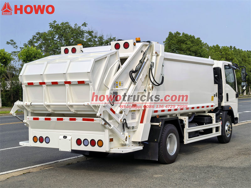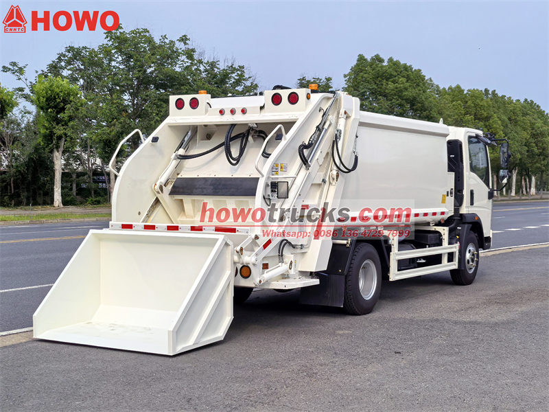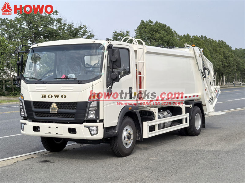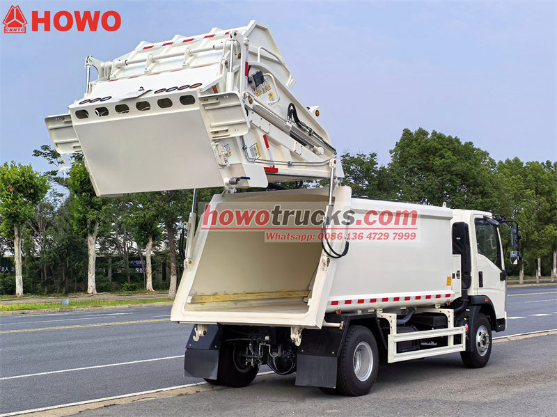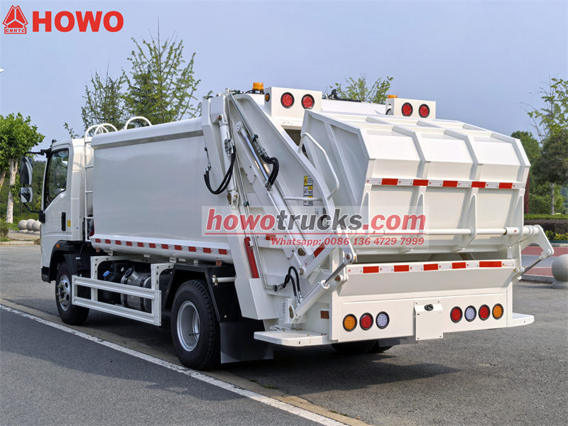 4×4, RHD drive is optionalDeHowo vuilniswagen met 160 pkDe Howo is een veelzijdig, licht voertuig, speciaal ontworpen voor het inzamelen van huishoudelijk en commercieel afval dankzij zijn wendbaarheid en gebruiksgemak. Hij is voorzien van een achterop gemonteerde trechter, een hydraulische verdichtingsschop en een optioneel kiepmechanisme voor het optillen van afvalcontainers. Dankzij het PLC CAN-bussysteem is de bediening eenvoudig. De Howo Light Rear Load is ideaal voor handmatige inzameling van grof of gemengd afval, met een capaciteit van 5 tot 13 kubieke meter.
