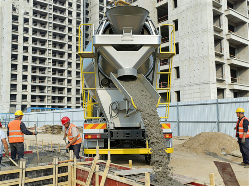 ▶ Ontlading: Wanneer de vrachtwagen op de bouwplaats aankomt, wordt het beton uit de trommel gelost door de trommel in de tegenovergestelde richting te draaien. Het beton wordt via een stortkoker aan de achterkant van de vrachtwagen afgevoerd en kan naar de gewenste locatie worden geleid.