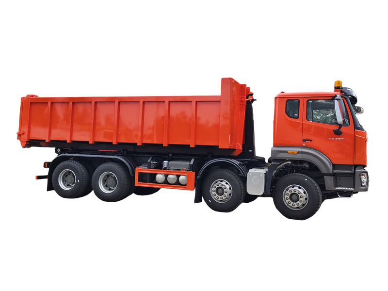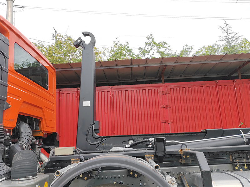 HW76 cabin, 6×6, 25 ton hook arm is optionalDe HOWO 20-tons haakarm vuilniswagen is een groot vuilniswagen, gebouwd op een robuust vrachtwagenchassis en uitgerust met een hydraulisch haakarmsysteem dat het onafhankelijk laden, lossen en legen van vuilniscontainers mogelijk maakt. Gebouwd op het HOWO NX 8×4 chassis en aangedreven door een Weichai-motor van 400 pk, heeft de wagen een totaalgewicht van 31.000 kg en is ontworpen voor het verwerken van vuilniscontainers met een inhoud van 15 tot 20 kubieke meter. Het 20-tons haakarmsysteem, dat hydraulisch wordt aangestuurd, voltooit een enkele operationele cyclus in minder dan 45 seconden, wat aanzienlijke efficiëntievoordelen oplevert bij het overladen van afval en cyclisch transport van meerdere containers.