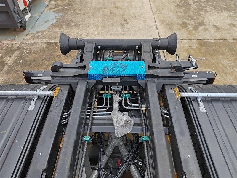 Uitgerust met een robuuste haakarm met een hefvermogen van 20 ton. De belangrijkste hydraulische en elektrische componenten zijn afkomstig van hoogwaardige, uit Europa geïmporteerde en internationaal gerenommeerde merken, wat stabiele prestaties en een verhoogde betrouwbaarheid garandeert. Kritieke dragende onderdelen, waaronder de haakkop, zijn grotendeels vervaardigd uit gegoten staal, waardoor de structurele spanning aanzienlijk wordt verminderd en de levensduur wordt verlengd.
