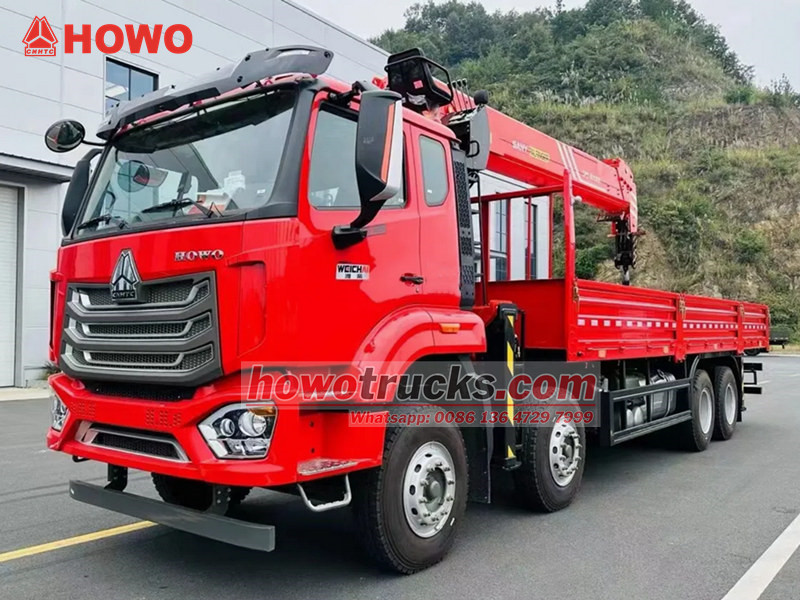 XCMG crane, UNIC crane, knuckle boom crane is optionalDe HOWO NX 8×4 vrachtwagenkraan is een multifunctioneel zwaar voertuig dat hijs- en transportmogelijkheden combineert. Hij is uitgerust met een Palfinger SPS40000 kraan met een maximaal hefvermogen van 16 ton en een hefkoppel van 40 tonmeter. De vijfdelige telescopische giek kan volledig worden uitgeschoven tot 19 meter en biedt, samen met de 360-graden draaifunctie, flexibele inzetbaarheid in diverse hijssituaties. Het chassis is gebaseerd op de HOWO NX-serie en wordt aangedreven door een 9,7-liter dieselmotor met een vermogen van 273 kW, gekoppeld aan een 10-versnellingsbak en een luchtremsysteem voor stabiele prestaties onder complexe werkomstandigheden.