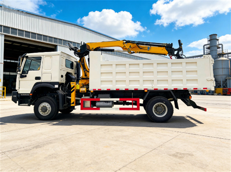 Deze zware Howo-kipper met kraan is gebouwd op het Howo-terreinchassis en uitgerust met een WP10.340E22-dieselmotor en een HW19710-10-versnellingsbak. Hij beschikt over krachtige prestaties en is geschikt voor complexe werkomstandigheden. De kipper is voorzien van een CS-kraan met geïntegreerde grijperfunctie en een maximaal hefvermogen van 8 ton, waarbij rekening is gehouden met zowel het heffen van zware lasten als de efficiëntie van het grijpen van materiaal.