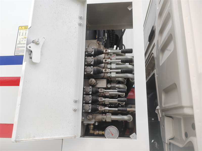 4. Activiteiten op meerdere locaties: Dankzij een elektrisch bedieningspaneel in de cabine, een handmatige hydraulische hendel aan de bestuurderszijde en een elektrische bedieningskast in de achterdeur, biedt het voertuig een gemakkelijke bediening vanuit meerdere posities.