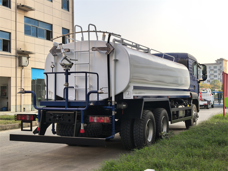 stainless steel tank, 6×6, RHD is optionalDe HOWO TX 18000L watersproeitruck is een multifunctioneel voertuig met hoge capaciteit, gebouwd op het robuuste HOWO TX chassis. De tank heeft een inhoud van 18.000 liter. Hij wordt aangedreven door een Weichai dieselmotor van 380 pk en een handgeschakelde 10-versnellingsbak, wat zorgt voor krachtige prestaties en een hoog laadvermogen. De tank is gemaakt van 5 mm dik koolstofstaal en voorzien van een corrosiewerende coating. De interne structuur bestaat uit vier compartimenten en anti-overspanningsschotten voor verbeterde rijstabiliteit. Het voertuig is uitgerust met een Weilong centrifugaalpompsysteem dat zorgt voor zelfaanzuigende drainage en een debiet van 60 m³/u. Daarnaast beschikt het over een multi-mode sproeisysteem met voorwaartse spoeling, achterwaartse besproeiing, zijwaartse besproeiing en een hogedrukwaterkanon met een bereik van 28 meter. Dit maakt het voertuig geschikt voor diverse toepassingen zoals stadsvergroening, stofbestrijding, koeling en noodbrandbestrijding.