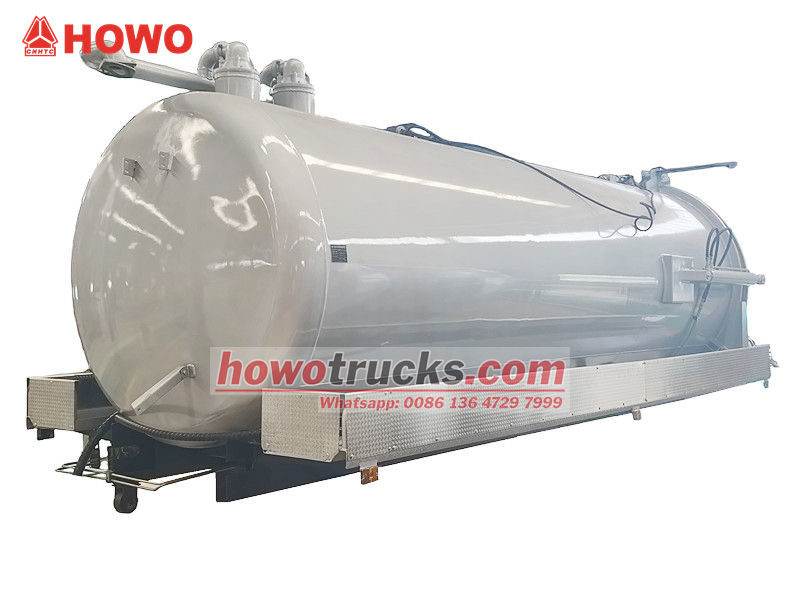 ●De kern van het bovendeel van de 12 m³ septische tankwagen bestaat uit een afgesloten tanklichaam, een vacuümextractiesysteem, bedieningselementen en veiligheidsaccessoires.