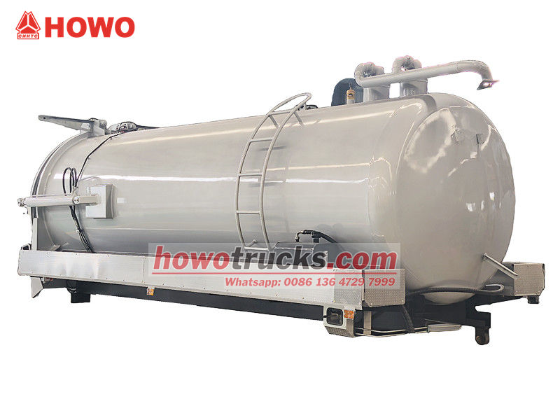 Optional MORO or Jurop pumpDe bovenbouw van de Nigeriaanse septische tankwagen met een inhoud van 12 m³ bestaat uit een afgesloten tank, een vacuümextractiesysteem, bedieningselementen en veiligheidsvoorzieningen. De tankwand is gemaakt van hoogwaardig koolstofstaal en heeft een cilindrische vorm. De binnenzijde is behandeld met een anticorrosielaag, wat een drukbestendige afdichting garandeert en lekkage voorkomt.