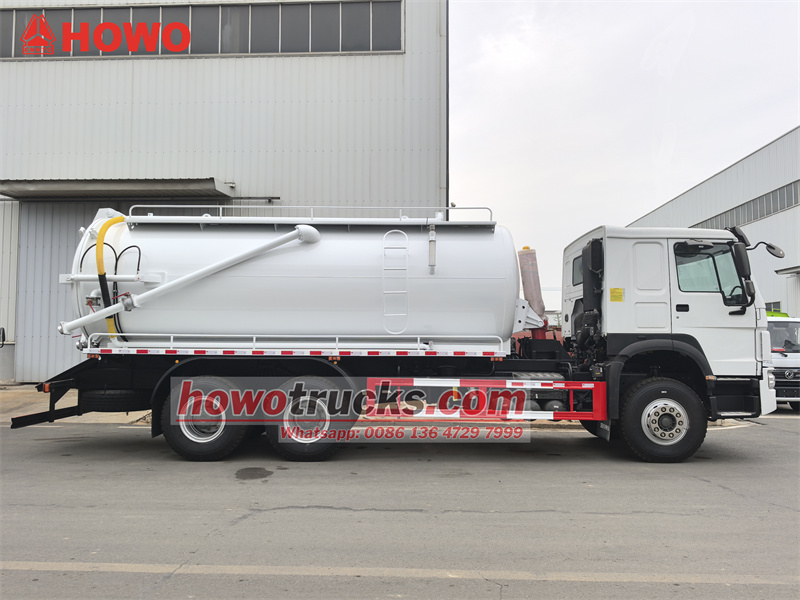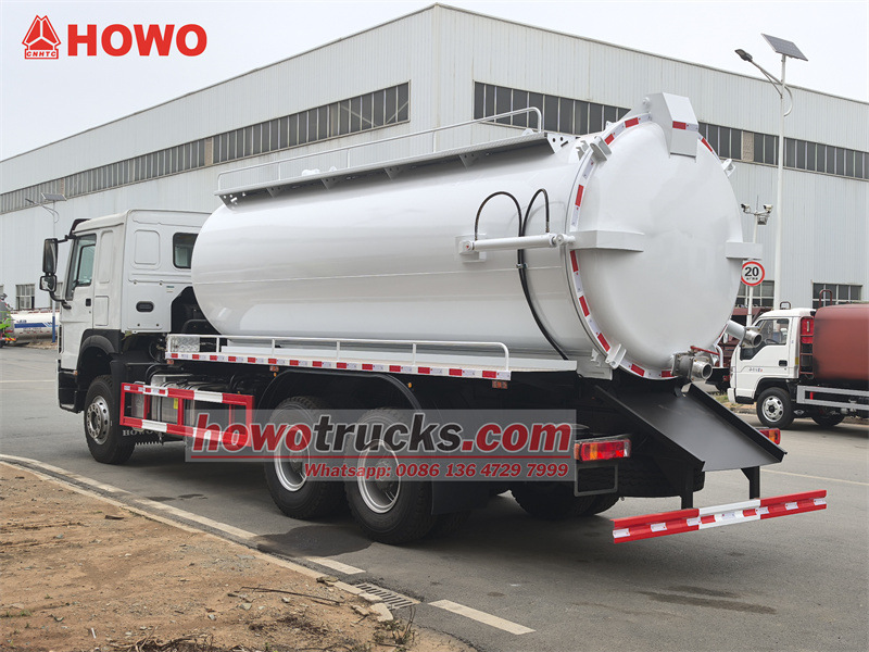 De HOWO 6x4 15 m³ rioolzuigwagen is een aangepaste versie van het HOWO HW76 cabinechassis. Met een wielbasis van 4600 + 1350 mm is hij uitgerust met een Weichai WP10.340E22 motor en een Sinotruk HW19710 10-versnellingsbak. De opbouw bestaat uit een 15 m³ riooltank van koolstofstaal met een wanddikte van 5 mm. De tank kan worden geheven en de achterklep kan worden geopend. De wagen is voorzien van een Jurop PN106D vacuümpomp met een debiet van 11.000 l/min. Verder beschikt de wagen over een kijkbuis, een ladder, een afvoerklep voor de achterklep en een handmatige hydraulische bedieningshendel aan de bestuurderszijde (voor het openen/sluiten van de achterklep en het heffen/laten zakken van de tank).