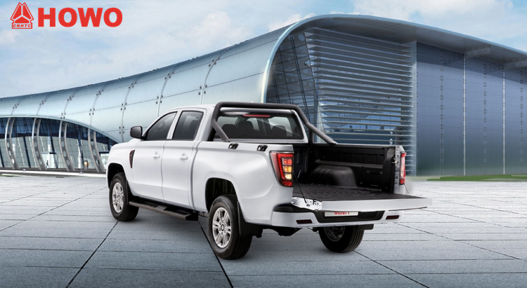 1630De S6 van 2024 Sinotruk Howo 4x4 pick-upDe door Sinotruk Howo zorgvuldig vervaardigde pick-up truck is een hoogwaardige bedrijfswagen die een groot laadvermogen, uitstekende terreinvaardigheid en een comfortabele rijervaring combineert. De krachtbron is een Weichai 2.0T dieselmotor met 190 pk en Euro VI-emissienorm. Deze is gekoppeld aan een automatische transmissie en vierwielaandrijving. Het voertuig heeft een maximaal laadvermogen van 495 kg en is uitgerust met een 1800 mm lange laadbak, die een uitstekend laadvermogen biedt en zowel geschikt is voor vrachtvervoer als voor offroad-gebruik.